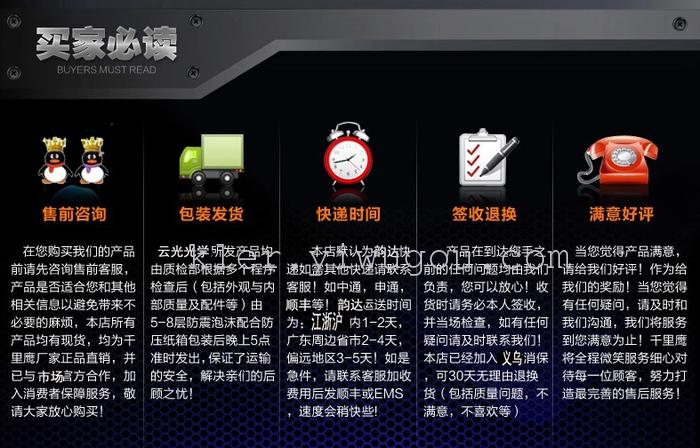 關(guān)于快遞:本店默認韻達快遞,如需發(fā)其他快遞請與客服聯(lián)系。順豐,中通,圓通,優(yōu)速,申通, 關(guān)于物流,本店默認德邦物流,德邦貨物丟失可賠。如需指定其他物流,貨物丟失不賠, 一、退貨: 注:進口產(chǎn)品奢侈品售出后一律不退不換。 質(zhì)量問題的我們承擔快遞費用,先墊付,不接受快遞到付,拒收 二、換貨: |