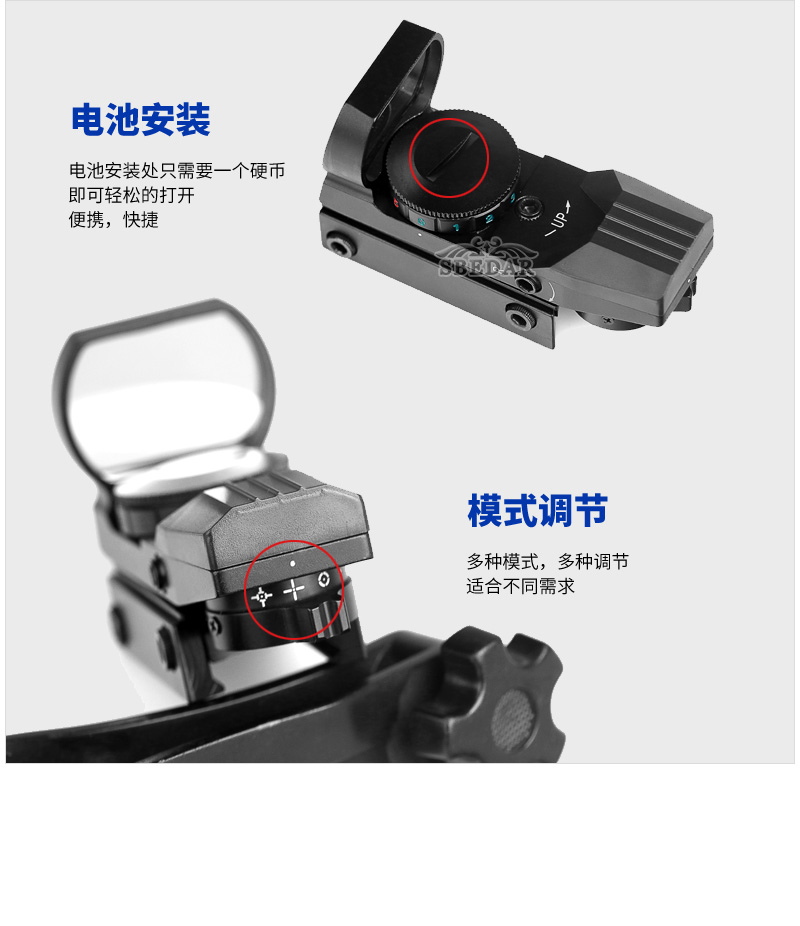 20mm鋼軌戰(zhàn)術(shù)全息反射紅綠點(diǎn)瞄準(zhǔn)鏡4型網(wǎng)架,具有33mm反射透鏡孔徑的無管設(shè)計(jì)提供了廣闊的視野,適合于運(yùn)動(dòng)目標(biāo)的正常和快速射擊射擊。耐用的全金屬結(jié)構(gòu),翼高可調(diào)(包括工具),紅綠雙色網(wǎng)紋,5檔可調(diào)光盤亮度,輕質(zhì)、耐磨和防震,集成安裝標(biāo)準(zhǔn)20毫米導(dǎo)軌。