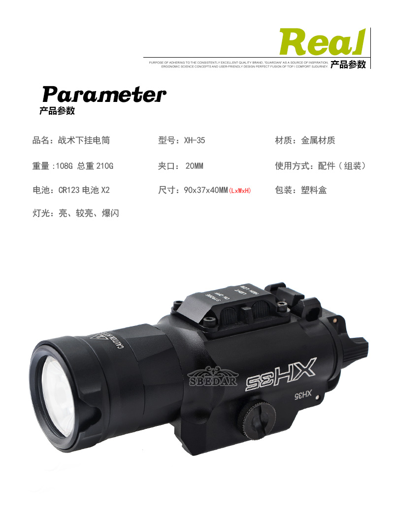 跨境XH35戰(zhàn)術(shù)手電400流明超高亮度白光LED暴閃下掛電筒