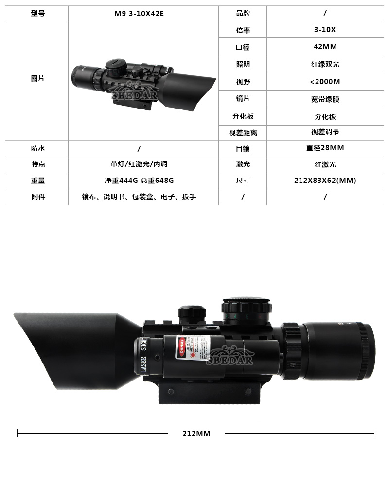 1 x M9 3-9x42E瞄準(zhǔn)鏡